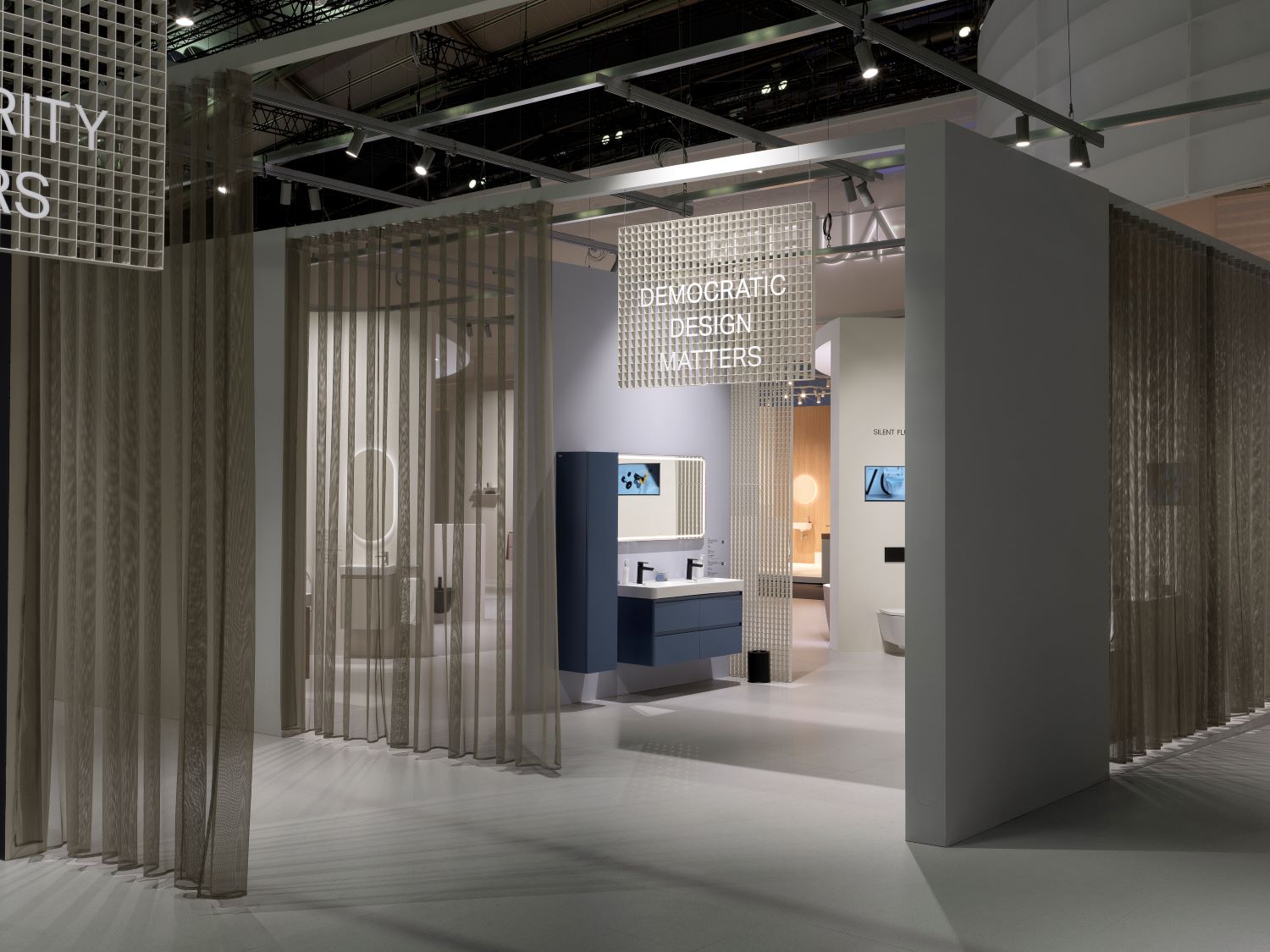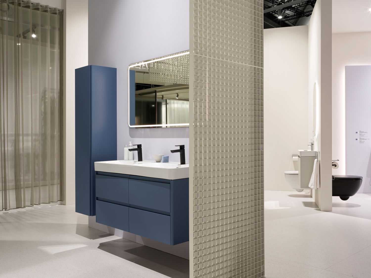 Our exhibition stand, designed by the Norwegian transdisciplinary studio Snøhetta, under the motto ‘Our Planet Matters’, guided you through themed rooms known as Matter Spaces. Here you could experience how we tackle the challenges of modern bathroom architecture: With well thought-out system solutions at all levels - from individual products and prefabricated sanitary walls to fully installed bathrooms. In doing so, we always have the big issues of our time in mind: Conserving resources in production and use, intergenerational living, new hygiene standards and the integration of digital technologies.